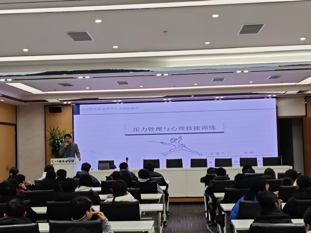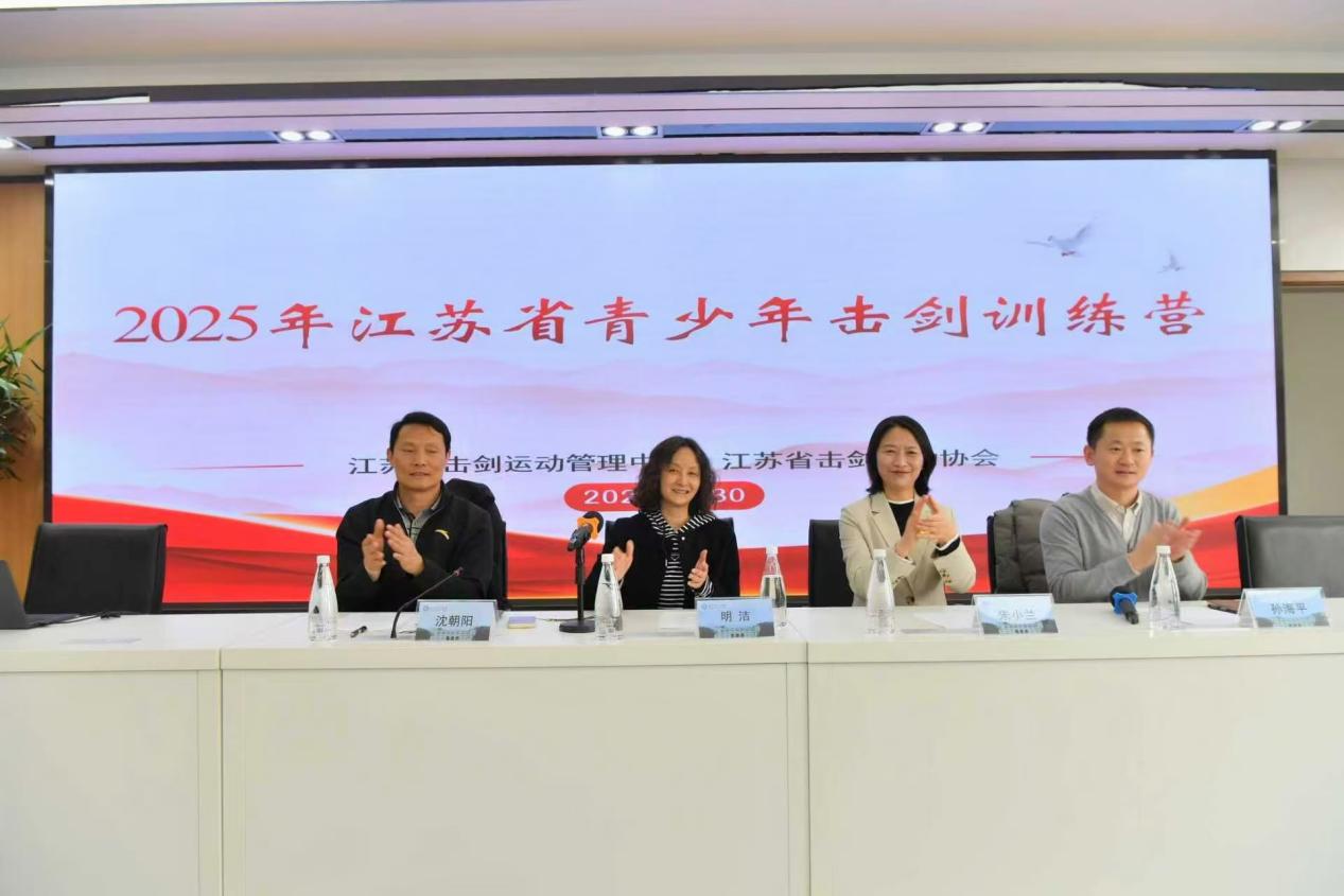 为深入学习贯彻习近平总书记关于青少年体育“享受乐趣、增强体质、健全人格、锤炼意志”重要指示精神,进一步提高击剑项目后备人才培养质量,增强省优秀运动队和基层教练员的业务交流,提升击剑项目青少年业余训练效益,2025年12月30日至2026年1月4日,由江苏省体育局主办,南京体育学院承办的2025年江苏省青少年击剑训练营在南京体育学院顺利举行。江苏省体育局青少年训练与反兴奋剂中心主任明洁,江苏省击剑运动管理中心主任、南京体育学院击剑学院院长沈朝阳,南京体育学院击剑学院直属党支部书记朱小兰,南京体育学院击剑学院副院长兼击剑队领队孙海平,江苏省击剑队一线教练员出席开营和闭营仪式。