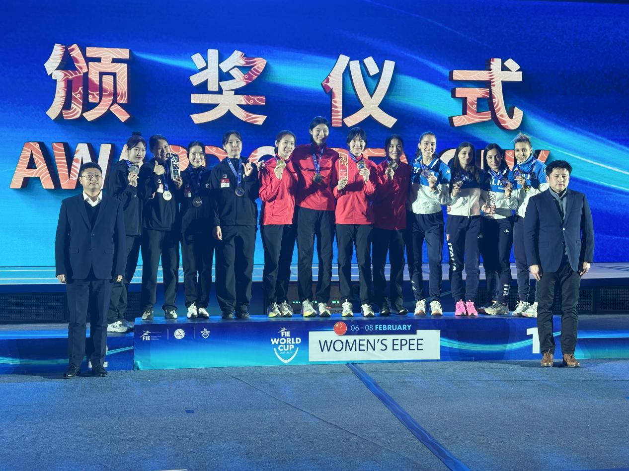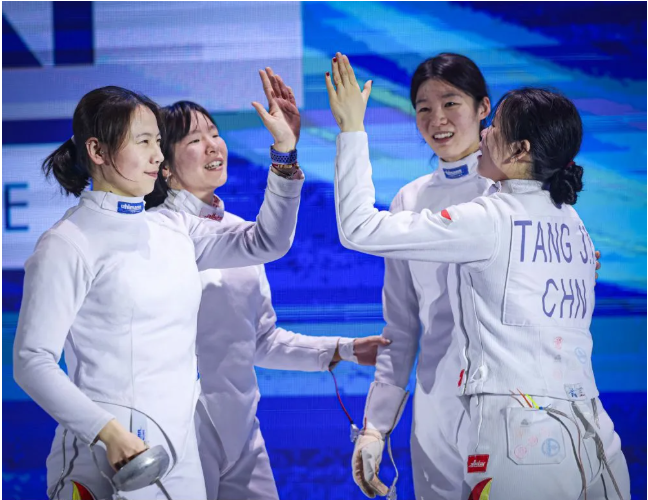 由我院优秀运动员施悦馨与国家队队友余思涵、唐君瑶、刘畅组成的中国女子重剑队,在团体赛首轮轮空后迅速进入状态,先后击败中国香港队、日本队,顺利跻身半决赛。面对前一日刚包揽个人赛金银铜牌、世界排名首位的意大利劲旅,中国队沉着应战、战术得当,最终以45比37力克强敌,强势挺进决赛。