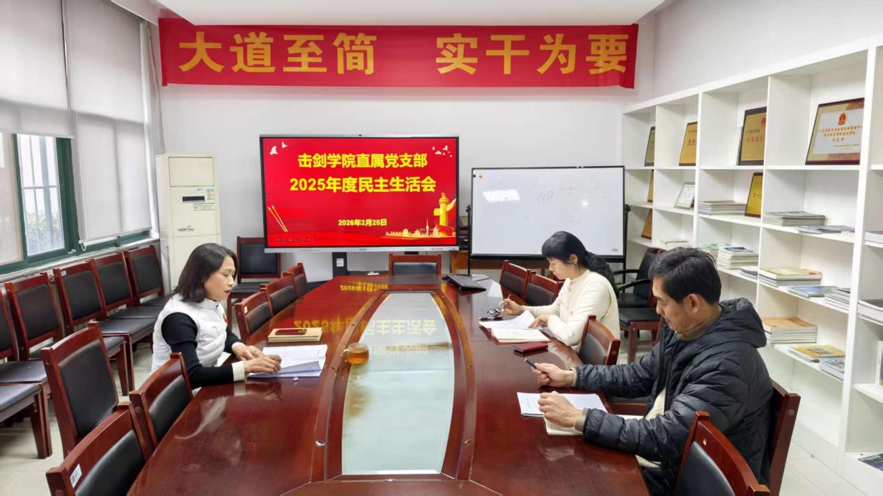 2月25日下午,击剑学院直属党支部在击剑馆一楼会议室召开2025年度民主生活会。会议由击剑学院直属党支部书记朱小兰主持,全体领导班子成员参加会议。