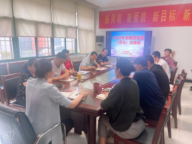 9月14日上午,击剑学院全体管理干部、教练员在击剑馆一楼会议室进行了2022年全国冠军赛(青岛站)总结会。校党委常委、副校长肖爱华,训练与管理督查组组长任大新参加了会议,会议由击剑学院院长沈朝阳主持。