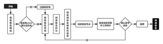 网上报名需使用ETEST通行证账号登录,该账号在教育部教育考试院所有使用ETEST通行证的报名系统中通用。账号注册的网址为:https://ncre-bm.neea.cn(公网)https://ncre-bm.neea.edu.cn(教育网),选择“江苏省”进行注册。请使用本人真实有效的邮箱和手机号进行注册,以便必要时重置或找回密码。若考生已有ETEST通行证,则在报名期间可直接登录报名。若没有该账号,需要先进行账号注册后再进行报名。