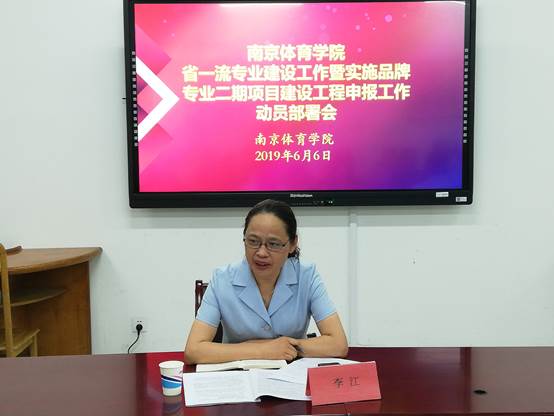 会上,李江就省一流专业建设工作暨实施品牌专业二期项目建设工程申报工作作动员讲话。她指出,建设一流专业、做强一流本科、培养一流人才,是全面提高我校人才培养质量、实现本科教育内涵式发展的必然要求,也是新时代背景下我校全面建成高水平体育大学的现实需要。她强调,我校省品牌专业一期项目验收刚刚圆满完成任务,站在新的起点上,大家要保持抢抓机遇的紧迫感与责任感,以时不我待的精神和善谋善为的智慧牢牢抓住新机遇,乘势而上、抢占先机、主动作为。为此,她要求:一是各高教学院要高度重视,充分认识申报和建设一流专业的重要性和紧迫性,强化一流专业建设的责任感和使命感;二是各高教学院要精心组织,对照标准,吃透精神,深入系统学习和掌握有关文件精神,认真领会其精神实质,把握申报关键节点;三是统筹协调,加强多部门信息沟通,互相支持配合,同频共振,协同作战,集中优势资源,挖掘专业特色,以本次申报工作为契机,构建专业建设和发展新的增长极。