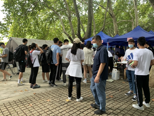 10月10日上午,运动员教育科在灵谷寺校区西大门组织运动员本科生进行2021-2022第一期学期注册报到工作。102213班、22043班、21943班、21843班共453人,其中102213班大一新生完成了学生登记表、双边权利义务协议书、学生证的填写,并领取了银行卡及教材;22043班、21943班及21843班学生领取教材并完成新学期学生证注册登记。报到期间,运动员教育科再次向学生强调了学籍管理、课堂纪律等相关事宜。