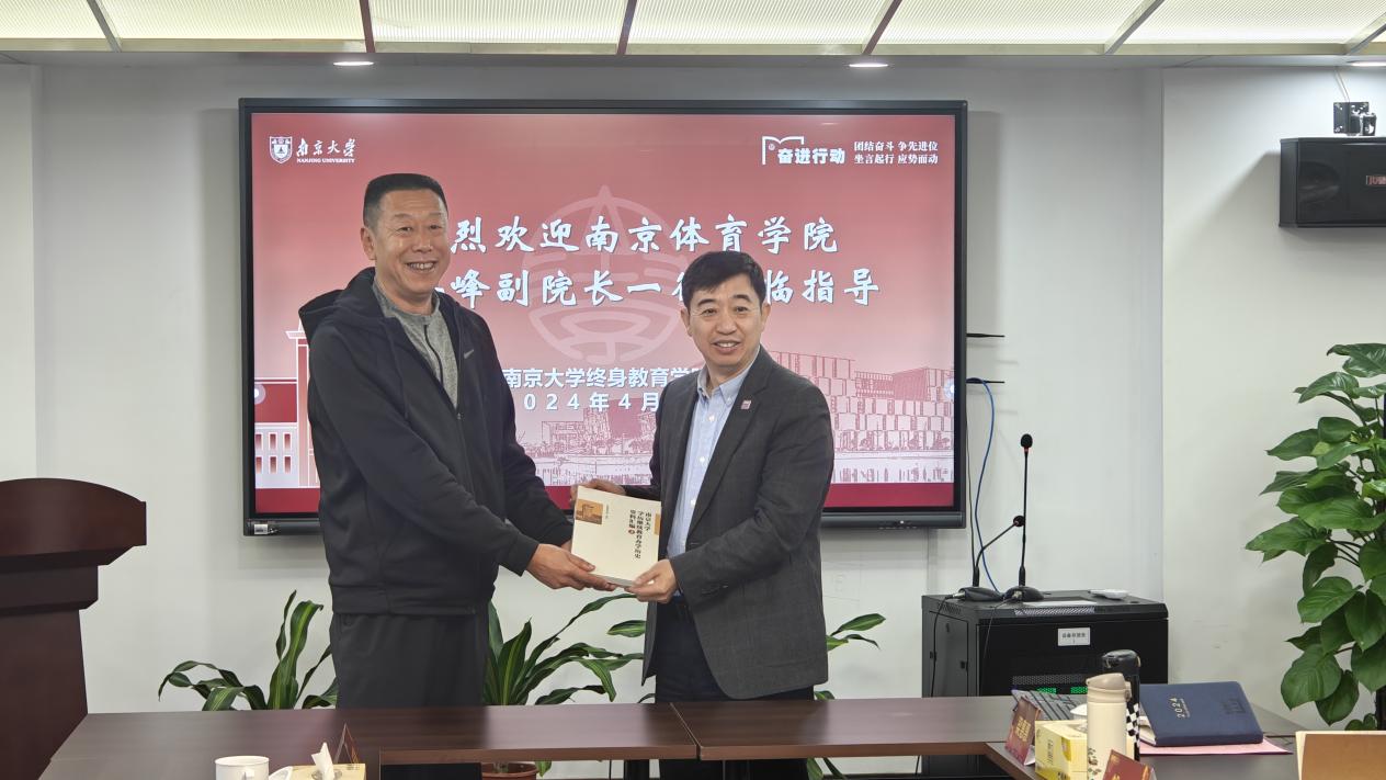朱海峰对南京大学终身教育学院对此次交流给予的高度重视表示衷心感谢。向南大同行介绍了学校在体育教育、竞技体育和人才培养等方面取得成绩。介绍了学校在继续教育和服务社会等方面的发展思路和具体举措。