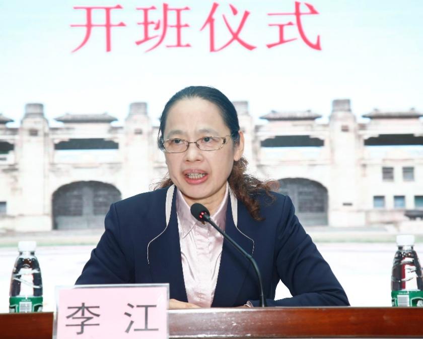 李江在致辞中对出席开班仪式的领导和参训学员表示热烈的欢迎,她指出社会体育指导员是全民健身的宣传者,科学健身的指导者,群众健身的组织者,体育场地设施的维护者,健康生活方式的引领者。希望通过培训,使社会体育指导员培训工作向着科学化、规范化的方向稳步发展,不断提高社会体育指导员队伍整体水平,为广大人民群众提供更多更好的体育公共服务,更好地去推动全民健身活动的开展,增强健身群众的体质与健康,促进精神文明与和谐社会的建设。最后,李江祝全体学员在南京体育学院培训期间,学有所获,生活愉快。