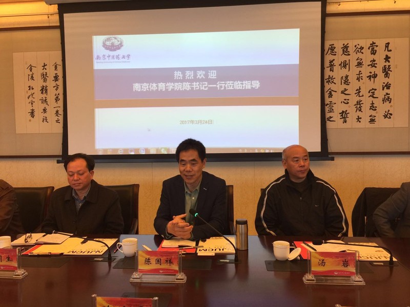 座谈会上,南京中医药大学陈涤平书记对我院一行的到来表示了热烈欢迎,对南京中医药大学的总体情况进行了介绍。我院陈国祥书记对南京中医药大学此次热情的接待表示了感谢,同时表达了在“大健康”时代背景下,就学科研究、人才培养和社会服务等方面的合作意向。