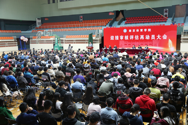 10月14日上午,我校迎接审核评估再动员大会在校本部体育馆隆重召开。校党委书记、评建工作领导小组组长朱传耿出席会议并作迎接本科教学审核评估再动员报告,校长、评建工作领导小组组长杨国庆主持会议,副校长、评建工作领导小组常务副组长史国生对本科教学审核评估预评估工作进行部署和培训,校领导、评建工作领导小组副组长汤岩、李江、金松、潘林珍、黄步龙出席会议。