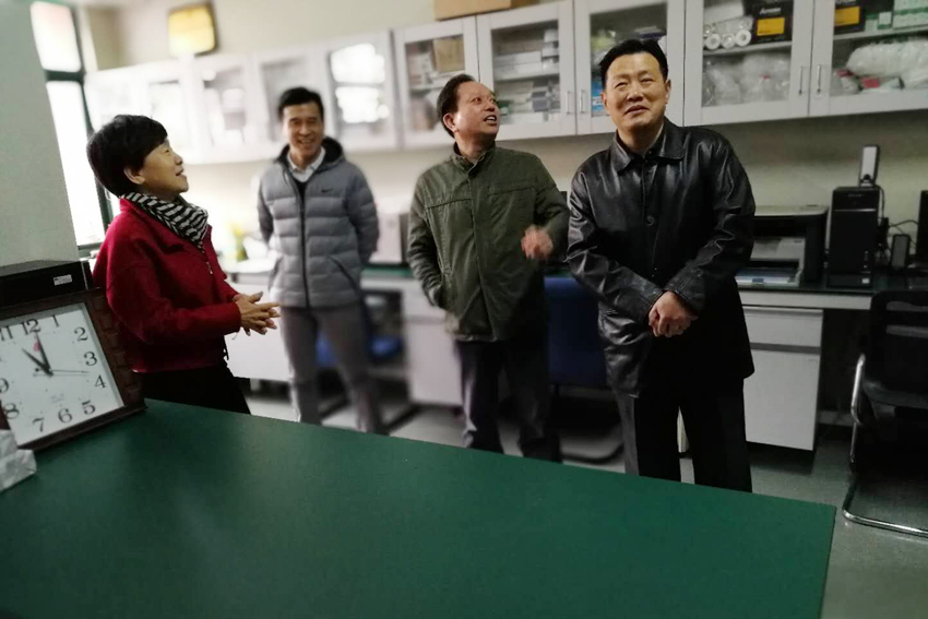 副校长史国生和金松检查实验室