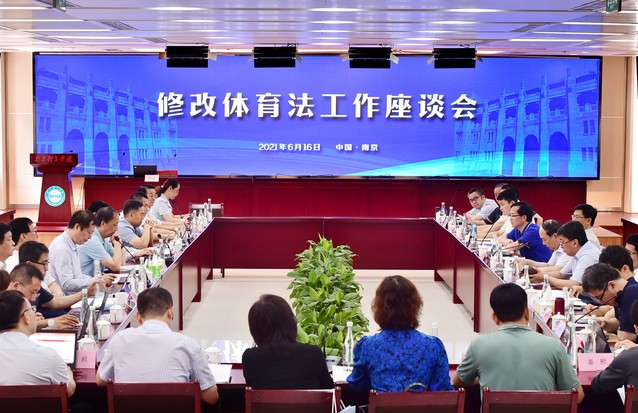 6月16日,全国人大社会委牵头,与国家体育总局在南京体育学院召开修改《中华人民共和国体育法》专题座谈会。全国人大社会委社会事务室主任王进,国家体育总局政法司副司长、一级巡视员李志全,以及全国人大、国家体育总局、中国法学会体育法学研究会相关负责同志出席座谈会。我校杨国庆校长出席座谈会并发表讲话,李江副校长、闫成栋教授作为专家参加了座谈会并提出了具体修法建议。
