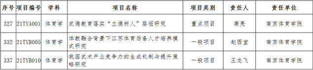 至此,我校今年省部级项目共获批立项11项,其中获批教育部人文社科青年基金项目2项、自筹经费项目1项、专项任务高校辅导员研究项目1项,国家体育总局决策咨询重大项目1项、体育科普项目1项,省社科基金重点项目1项、一般项目2项、自筹项目1项。今年我校省部级立项项目种类和领域较往年都有了新的突破,教育部人文社科自筹经费项目和专项任务项目首次获批,立项项目涉及学科领域除了体育学学科,还有交叉学科。