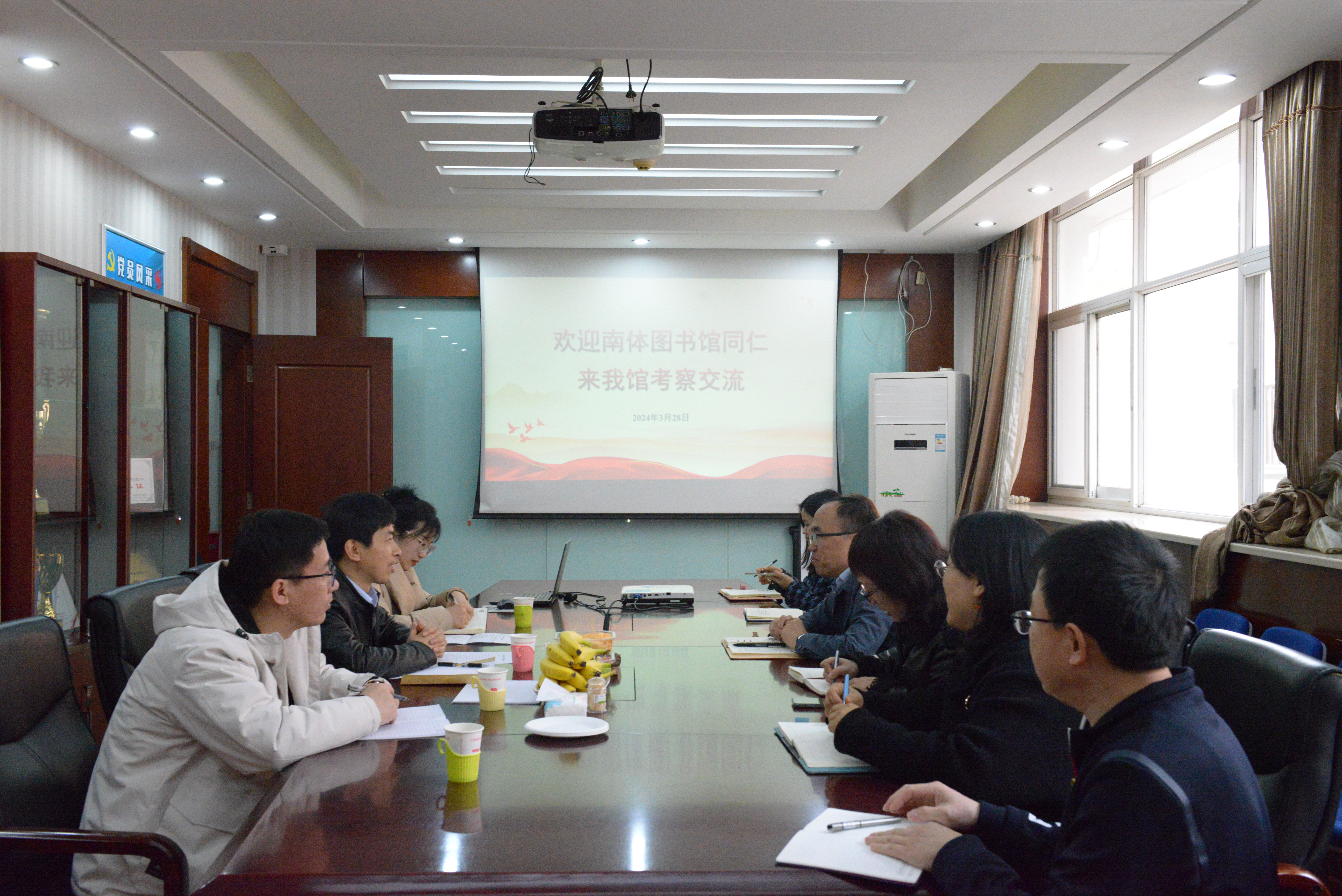 3月28日,图书馆副馆长李明华带领业务骨干赴北京体育大学图书馆调研学习。北京体育大学图书馆副馆长王会寨全程陪同并热情接待了李明华一行,各部室负责人参加了调研活动。