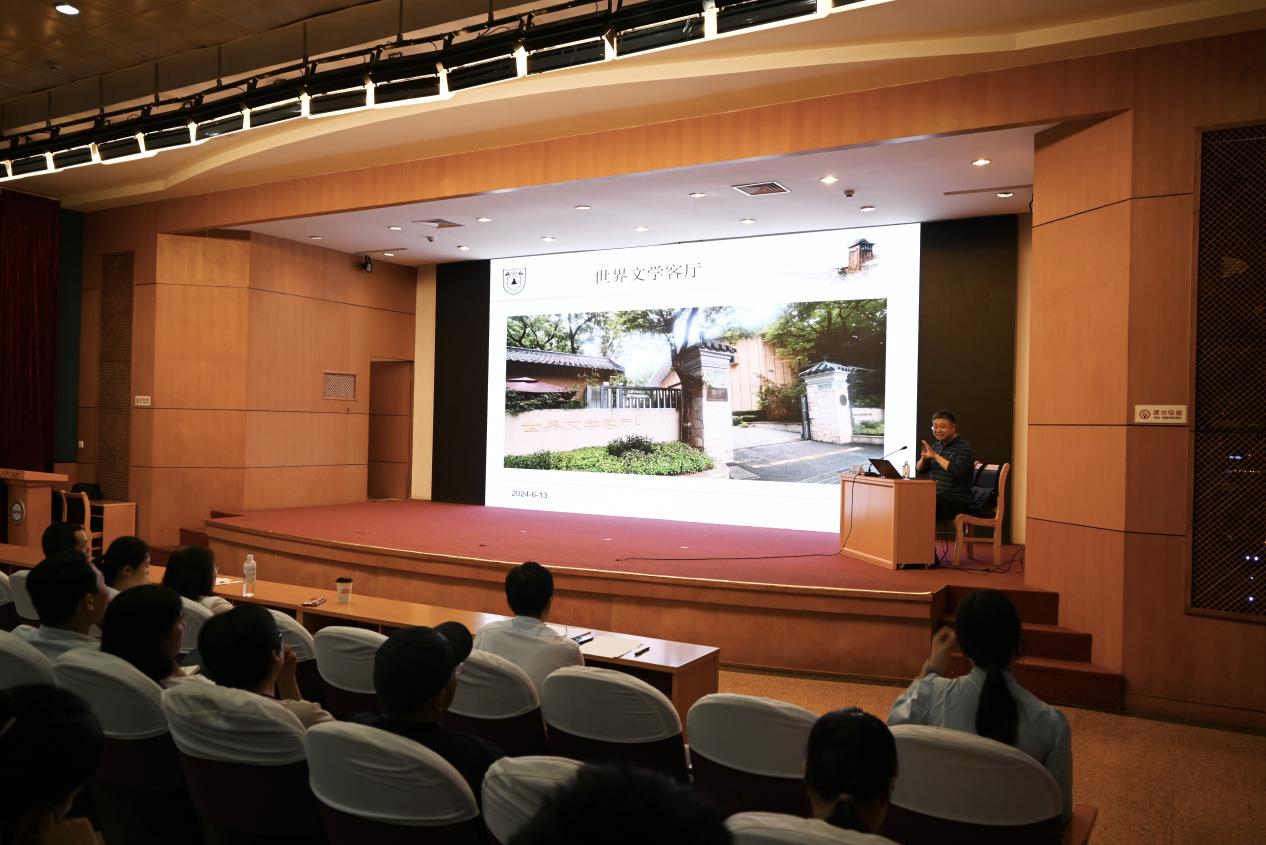 6月13日晚,书香南体名家讲坛2024第1期在灵谷寺校区图书馆第一报告厅隆重举办。本期讲坛特邀南京大学文学院教授、博士生导师苗怀明开讲。苗怀明以“从六朝古都到世界文学之都——话说南京的文学风韵”为题,引导师生切身感受南京千年文脉,坚定文化自信。讲座由校图书馆馆长李明华主持。