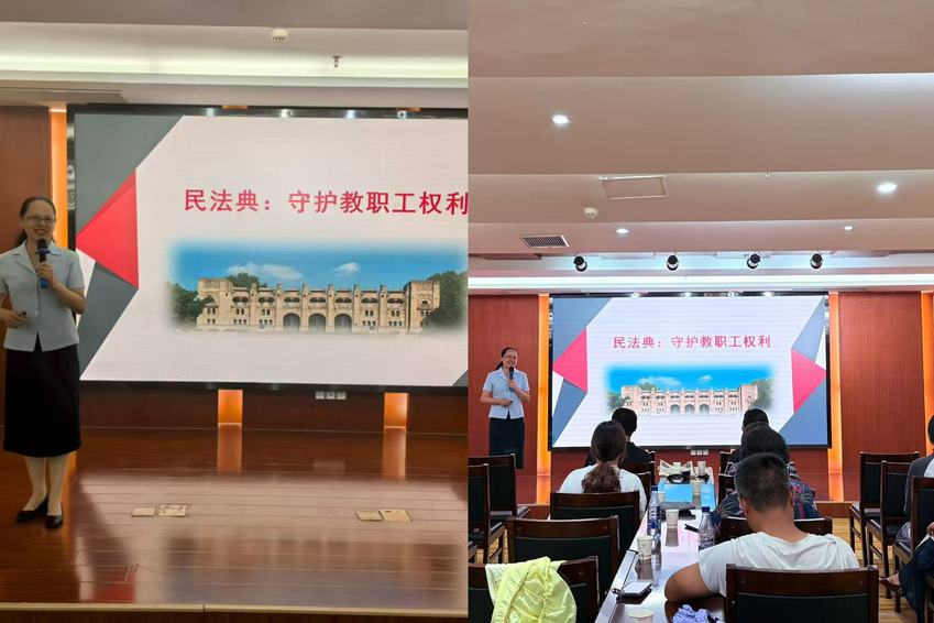 8月28日下午,关工委执行副主任李江受校工会邀请,为在连云港东海疗休养的优秀教职工作了题为“《民法典》:守护教职工权利”的专题讲座。她从三个方面对《民法典》进行解读:一是民法典的概述,二是《民法典》守护教职工哪些权利?三是维护教职工权利的途径。李江副主任结合自身工作经验与社会阅历,用通俗易懂、幽默风趣的语言和丰富的案例,“互动式”的教学方法向教职工详细解读了《民法典》中与教职工相关的人格权、财产权、知识产权、婚姻家庭权、继承权等权利。此次讲座使教职工对《民法典》有了更深入的了解,法治意识得到了一定提升。下一步,校关工委将密切配合有关部门持续关注师生员工的法治教育需求,强化宣传教育,创新教育形式,助力校园法治文化建设。