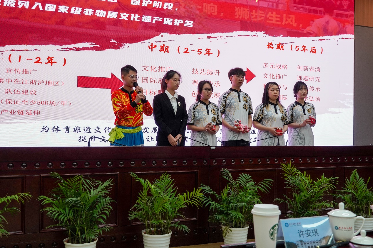 第十四届“挑战杯”中国大学生创业计划竞赛南京体育学院校赛决赛于近日落下帷幕。本次“挑战杯”中国大学生创业计划竞赛经校各个二级学院前期广泛动员和申报,共有53项作品进入初赛,经过专家网络评审环节最终有13个项目进入校赛总决赛。我院学生吴梓聪作为《国魂龙狮,薪尽火传—中国体育非遗聪狮品牌IP的耕耘者》项目负责人,联合体育与人文学院、体育产业与休闲学院以及运动健康学院学生组成的跨专业合作“聪狮团队”,在我院教师江山教授等的指导下,经过答辩演练、现场答辩、专家评审等环节,最终在校赛总决赛13个项目中脱颖而出,进入“四强”,晋级获得代表学校参加省赛资格。
