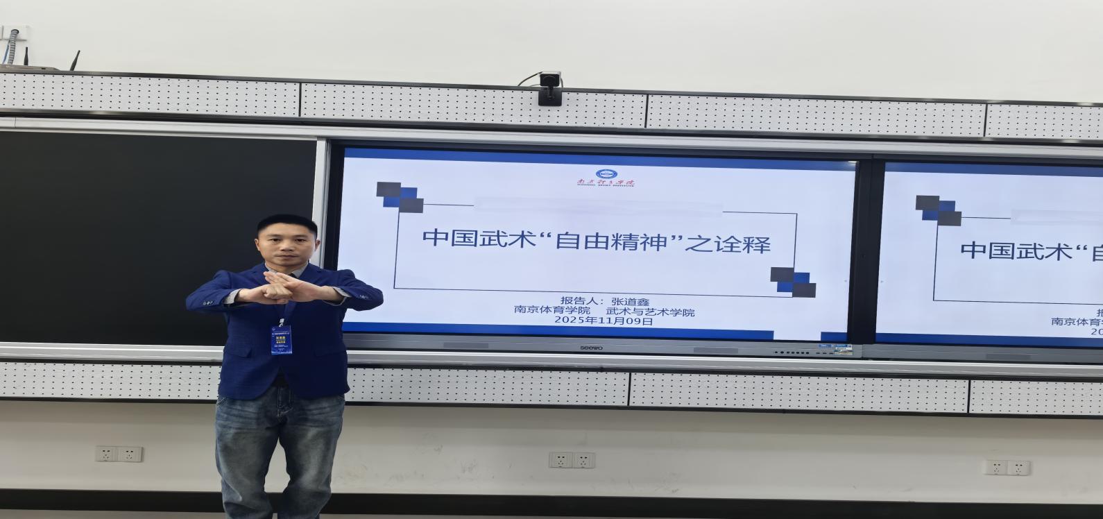 南京体育学院武术系张道鑫参会并在“中华体育精神研究”专题上作了题为《中国武术“自由精神”之诠释》的专题报告,从哲学层面深刻解读了武术的文化内核,引发了与会学者的热烈反响。报告中,张道鑫老师立足中华优秀传统文化,对中国武术所追求的“自由”进行了独到阐释。他指出,在中国武术的技术、制度和精神维度中蕴含着浓郁的“中国式的自由精神”。其中,技术维度中的“自由精神”主要体现在对“无招胜有招”的内在超越之上;制度维度中的“自由精神”主要体现在“道德约束”的逆向修行之中;精神维度中的“自由精神”主要体现在“技道合一”的生命体验之上。