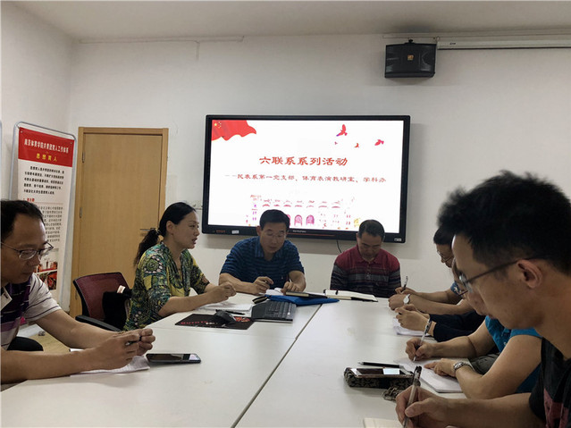 为贯彻落实我校“六个联系”工作机制要求,民族体育与表演系第一党支部、体育表演教研室与学科办于6月7日上午,在综合馆二楼团委会议室召开了工作对接会。与会人员有学科办盛蕾处长孙国有副处长及学科办所有成员、民族体育与表演系第一党支部部分党员及体育表演教研室部分教师(其余教师因上课未能参加)参加了此次会议,会上就具体对接内容进行了交流和探讨。本次会议由第一党支部书记、体育表演教研室主任江山老师主持。