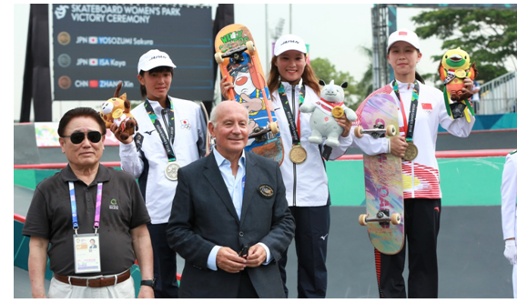 北京时间8月29日,在印尼巨港雅加巴林体育城第18届亚运会女子滑板碗池决赛中,我院民族体育与表演系学生张鑫夺得铜牌,为滑板项目拿下中国第一块亚运奖牌。今年20岁的张鑫为我院啦啦操队尖子,2017年跨界选材进入中国滑板集训队(南京),经过短短一年的训练,在这场日、印顶尖高手云集的巅峰对决中,与队友一起实现了中国滑板运动的历史性突破。