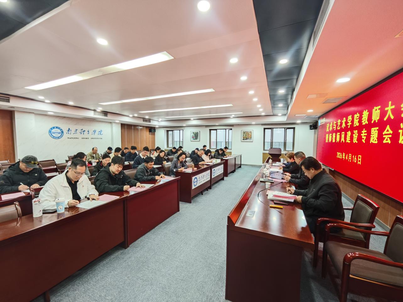 4月16日下午,武术与艺术学院在行政办公楼201室召开全体教师大会暨师德师风建设专题工作部署会,学院领导班子成员及全体教职工参加会议,会议由院长张明主持。