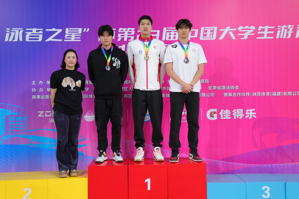 2024年10月23-26日,第二十三届中国大学生游泳锦标赛在兰州市开赛。本届锦标赛由中国学生体育联合会和兰州市人民政府主办,兰州市体育局承办,吸引了来自众多高校的80支代表队、798名运动员及教练员参赛。比赛设置了自由泳、蛙泳、仰泳、蝶泳和个人混合泳,以及4×100米自由泳、4×100米混合泳等接力项目的比赛。我校大学生运动员在4个比赛日中,奋力拼搏,勇争第一,共获得八枚金牌,可喜可贺!