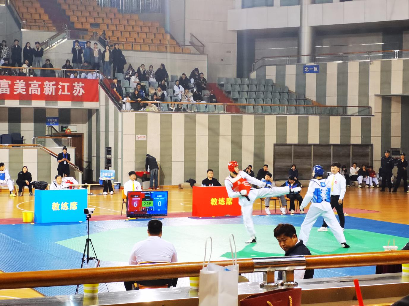 本届赛事由江苏省教育厅、江苏省体育局联合主办,吸引全省81所高校768名运动健儿同台竞技。我校高度重视此次参赛工作,运动训练学院葛见珠书记亲自担任领队,孙尊航、苗绿峰两位担任教练,精选10名跆拳道专项学生组成参赛代表队。赛前,葛见珠书记主持召开赛前动员,强调"以赛促训、以赛育人"理念,要求队员们"既要展现技术硬实力,更要传递体育精神软实力"。教练团队从战术训练、心理调适等方面进行全面科学谋划,为赛事佳绩奠定坚实基础。