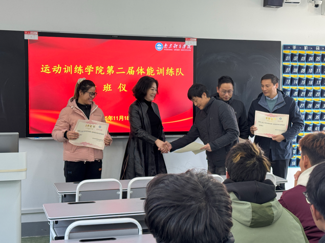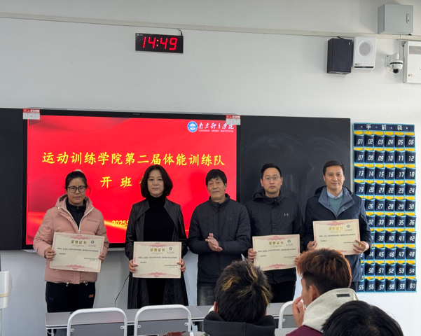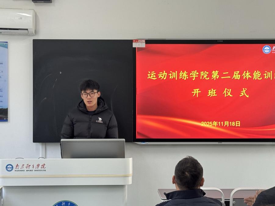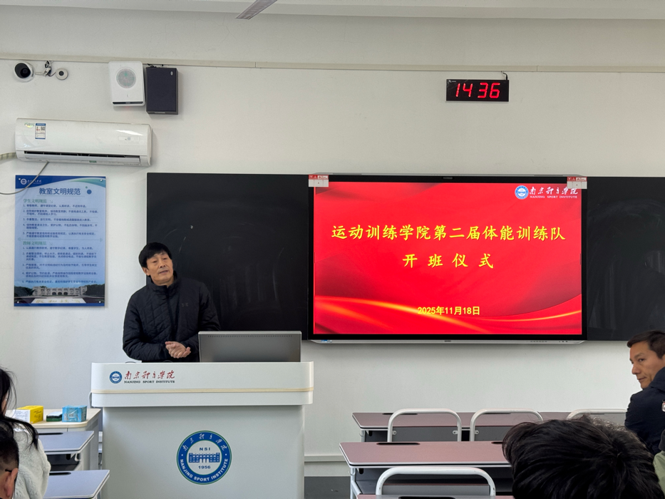 2025年11月18日下午,南京体育学院第二届“南体体能”训练队开班仪式在教学楼C301教室顺利举行。出席本次开班仪式的领导和老师有运动训练学院院长赵琦、篮排系主任赵西堂、训练理论系牛森、体能系主任王智明、体能系副主任谢恩礼、体能专项老师王冬君。会议由谢恩礼老师主持,第二期体能训练队全体队员参加活动。