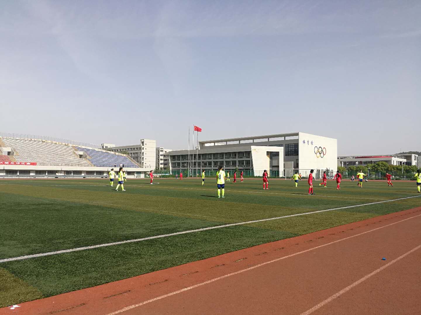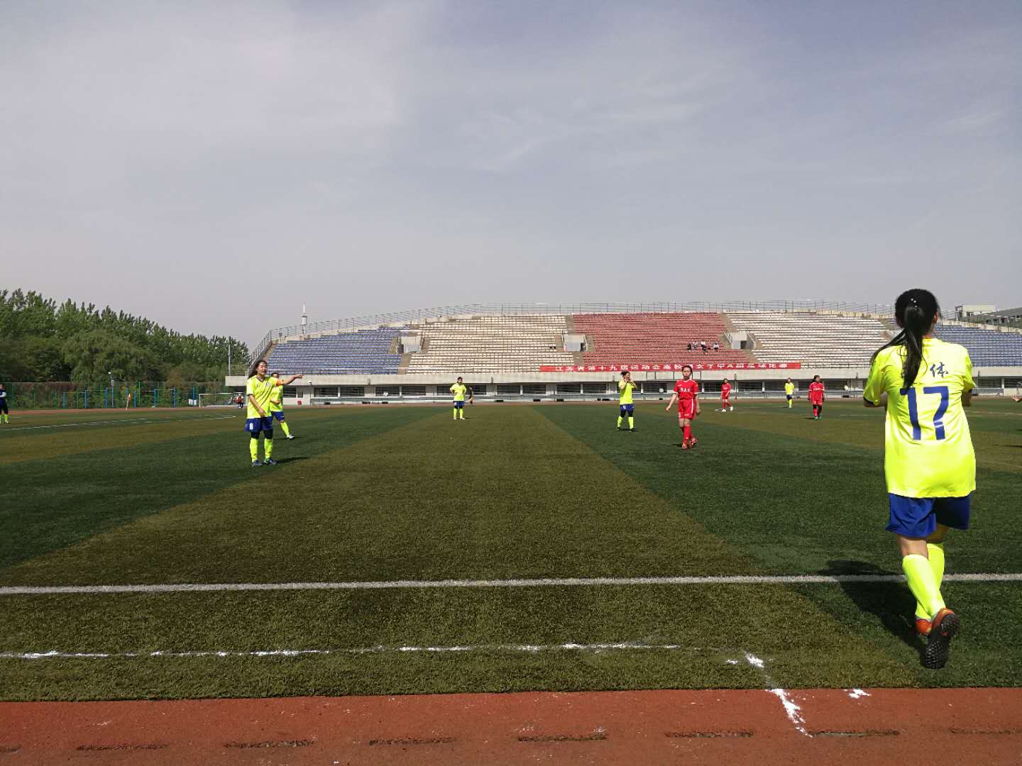 第三个比赛日,天气转晴;今天我校女足将迎战小组赛第三个对手----江苏大学女足。