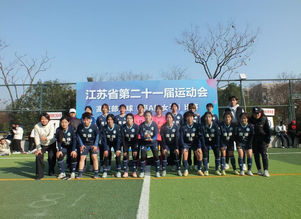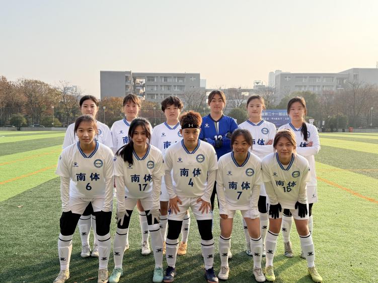 女足由张晓红、时晓雨两位老师担任教练。2025年12月10日至17日,女子组比赛在河海大学展开争夺,共八支高校高水平足球队参加。南京体育学院女子足球队同样表现不俗,在小组赛负于苏州大学的情况下毫不气馁,连续9:0战胜南京工业大学,3:0战胜扬州大学,打出了气势,晋级淘汰赛。四分之一决赛在常规时间0:0的情况下,最终点球(5:3)战胜传统强队河海大学进入半决赛。半决赛0:5不敌卫冕冠军江苏师范大学,随后的季军争夺战中,面对强劲对手,队员们团结一心,在赛场上积极跑动、果断攻防,最终0:1惜败南京信息工程大学,取得了女子组第四名的成绩。在多场比赛中,女足姑娘们面对强手,发挥出色,不仅为学校赢得了荣誉,也彰显了南体女子足球运动的蓬勃发展态势和深厚潜力。