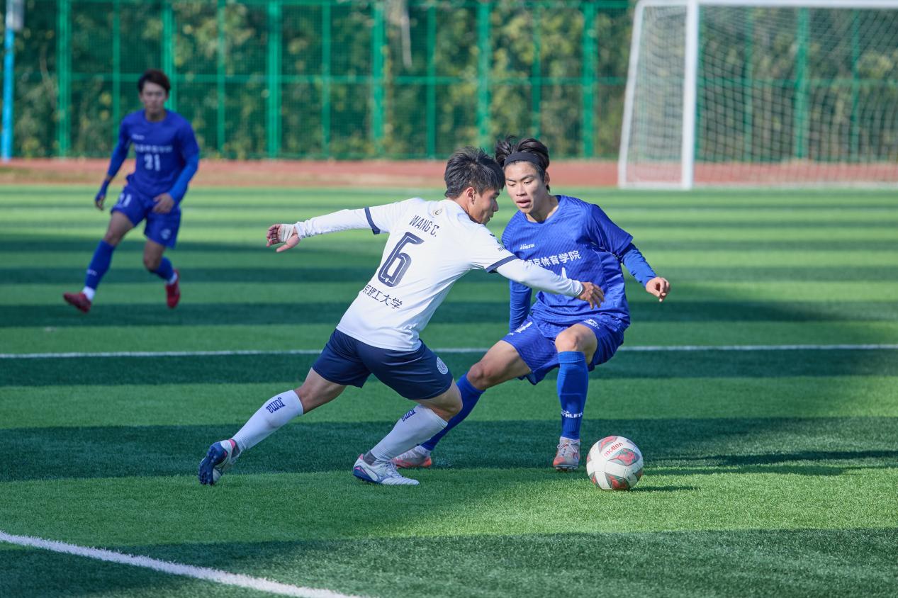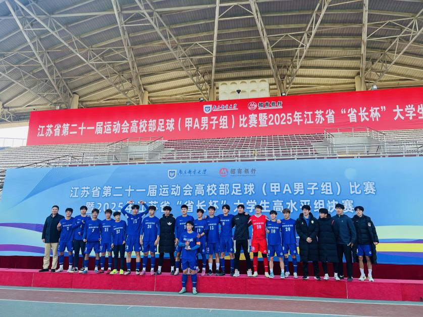 2025年12月8日至15日,男子组比赛在南京邮电大学(仙林校区)举行,共九支高校高水平足球队参加。南京体育学院男子足球队在小组首赛失利的情况下,教练组魏亮、周霏霏老师带领队员积极总结经验,出线关键战3:0战胜南京农业大学以小组第三的成绩挤进八强。四分之一决赛在2:2打平的情况下点球击败南京工业大学,成功挤进省运会四强。半决赛0:2憾负卫冕冠军河海大学,无缘决赛。季军争夺战中,凭借出色的战术执行、默契的团队配合以及坚韧的意志品质,最终以4:0战胜南京理工大学,成功跻身三甲,夺得男子组第三名。这一成绩不仅是球队在本项赛事中的突破,也刷新了学校在该组别省运会足球竞赛中的历史最佳战绩,充分展现了南体男子足球勇于进去的精神风貌。