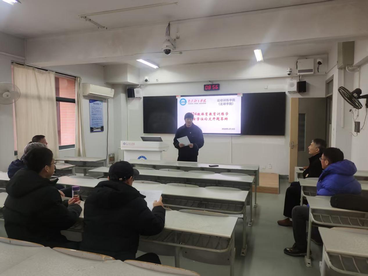 2026年1月10日,体育教育训练学硕士研究生开题答辩于我校顺利举行。共有18名硕士研究生参加本次开题答辩。答辩前,赵院长专门主持召开了专家准备会,就答辩要求、评议标准及流程规范进行了统一说明。第一组答辩专家由南京师范大学阿英嘎教授、南京财经大学何强教授、南京师范大学杜长亮教授组成;第二组答辩专家由南京师范大学吉灿忠教授、南京审计大学孙兵教授、南京农业大学张禾教授组成。