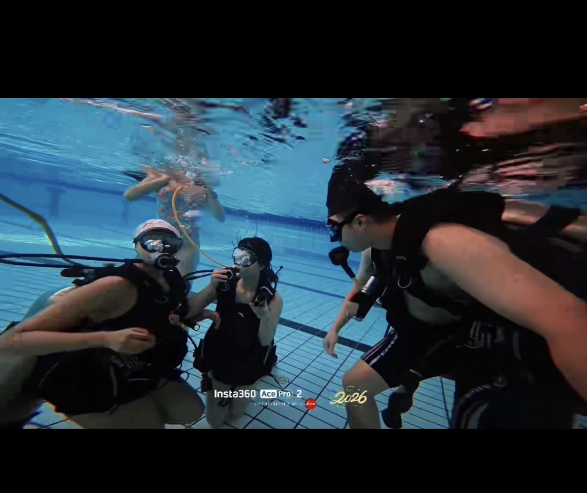 理论教学结束后,实操体验环节有序展开。在我校教练与社团成员的一对一协助下,参与活动的两校同学依次完成装备穿戴、下水前热身及安全检查,随后分批进入泳池开展水下实操练习。教练全程陪伴护航,实时指导同学们调整水下动作、把控游动节奏,耐心帮助大家克服初次下潜的紧张情绪,逐步适应水下失重环境,感受水肺潜水的独特魅力。我校社团成员充分发挥专业优势,主动分享水下游动技巧,协助教练维护现场秩序,保障每一位参与者都能安全、顺畅地完成潜水体验。静谧的水下世界里,两校同学携手探索,在碧波中舒展身姿,沉浸式体验水下运动的乐趣,现场氛围轻松而热烈。