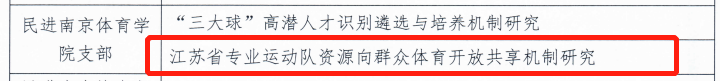 在本次课题申报中,我院积极组织科研力量参与,取得阶段性成果。其中,由民进江苏省委医卫体专委会副主任、我院范凯斌教授主持的课题《江苏省专业运动队资源向群众体育开放共享机制研究》成功入选。该课题聚焦竞技体育资源社会化利用问题,探索专业运动队资源服务全民健身的实现路径,对于推动体教融合与公共体育服务体系优化具有重要意义。