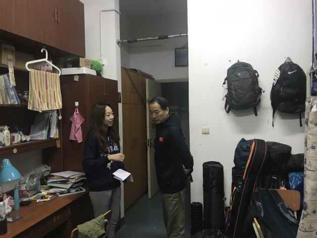 杜书记在检查学生宿舍
