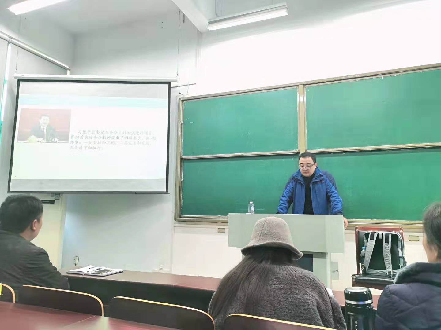 12月5日下午,学校马克思主义学院洪北頔博士应邀来仙林校区,为运动训练学院、体育产业与休闲学院全体师生党员进行党的十九届四中全会精神学习辅导。