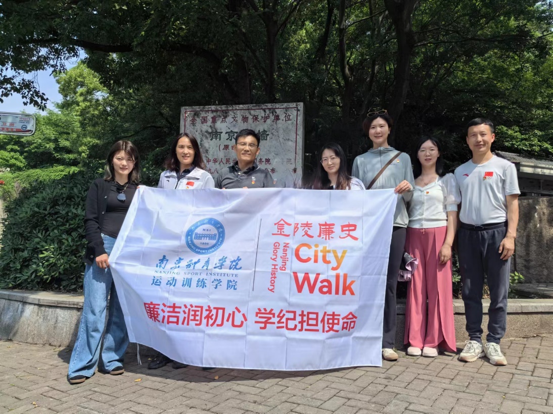 为推动廉洁文化建设,以党史学习教育为契机,将廉洁文化与学校体育特色元素结合,运动训练学院党总支组织基层党支部以结对的形式,分2批次开展“金陵廉史”City Walk,参观廉政文化教育基地,深入学习习近平总书记关于廉洁齐家、廉洁修身、廉洁用权和廉洁从教的重要论述,推动党员干部坚定理想信念,筑牢拒腐防变的思想道德防线。