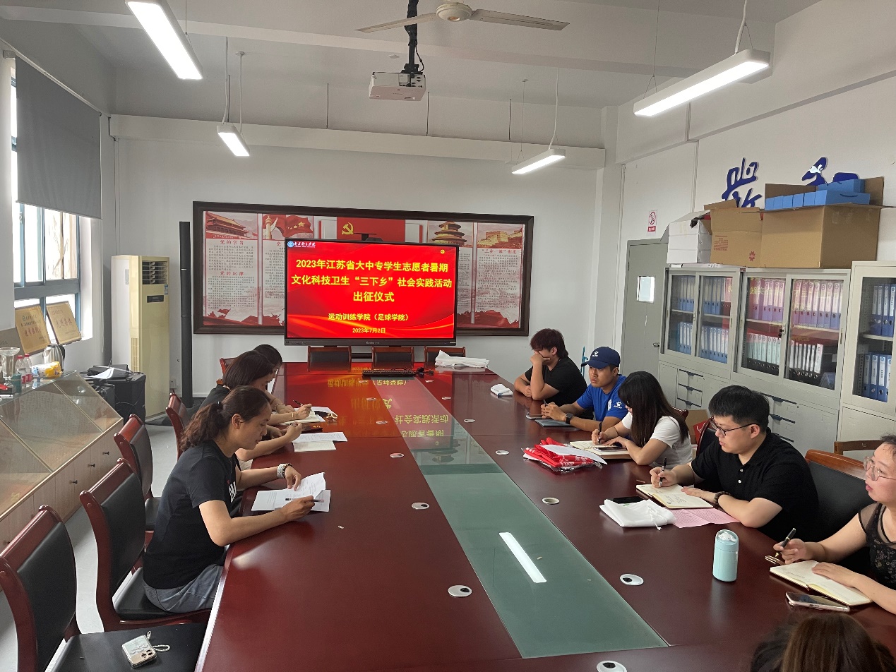 为深入学习贯彻习近平新时代中国特色社会主义思想主题教育,全面贯彻落实党的二十大精神和习近平总书记关于青年工作的重要论述,引导和帮助广大青年学生在与现实相结合的“大思政课”中“受教育、长才干、作贡献”,引领广大青年学生立志做有理想、敢担当、能吃苦,肯奋斗的新时代好青年,运动训练学院积极组织响应,7月2日下午,在仙林校区315会议室开展2023年大学生暑期“三下乡”社会实践活动出征仪式,院党总支书记葛见珠、党总支副书记杨蓉及社会实践活动的指导老师和学生代表参加出征仪式。出征仪式由院团委副书记吴海艳主持。