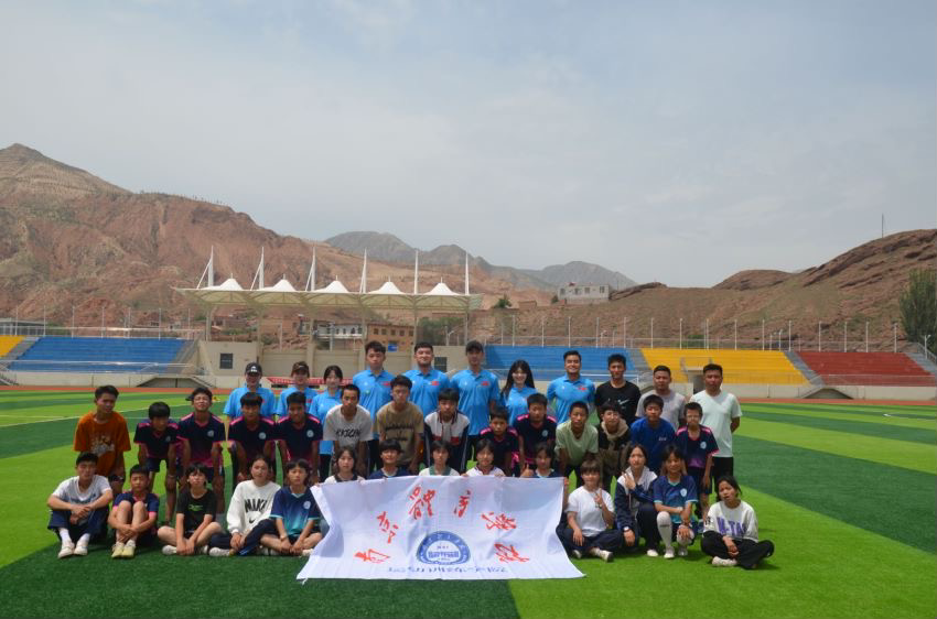 所有的技巧和体能训练结束后,运动训练学院的老师和学生们与东乡县石化中学的东乡族体育教师和学生开展了一场足球友谊赛。东乡族是中国甘肃省的一个少数民族,主要聚居在甘肃省临夏回族自治州的东乡族自治县,东乡族具有注重礼节和热情好客的传统,东乡县石化中学的师生绝大部分是东乡族。东乡县石化中学是中国石化集团公司援建的一所初级中学,是解决搬迁居民教育难问题,改善当地办学条件的重要民生工程,也是中国石化优选的37所“一对一”结对帮扶重点学校之一。实践队的队员们也将民族团结进步融入在实践教学中,激扬精气神,汇聚正能量。在比赛中每支队伍都展现了顽强拼搏、团结进取的精神,充分展示了朝气与活力,各队员们奋勇争先,展现了高超的球技和敏锐的判断力。比赛不仅增强了团队凝聚力,也增进了队员之间的友谊。