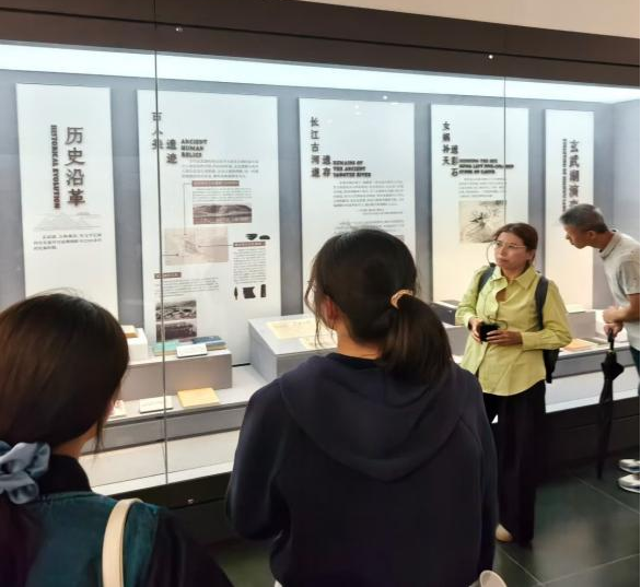 玄武湖作为南京的标志性景观,其历史源远流长。在湖史馆内,同学们通过讲解了解到,玄武湖从史前时期就已经形成,在其周边如锁金村、安怀村以及鼓楼岗的北阴阳营一带,都曾发现过新石器时代晚期到青铜时代的人类聚落遗址,这让学生们对中华民族史前时期起源有了更加详细直观地认识。在参观过程中,同学们仿佛穿越时空,从南北朝时期的萧统在凉州编制的鸿篇巨作《昭明文选》,到陈宣帝玄武湖水上阅武的英姿飒爽,再到近代玄武湖大辩论引导恽代英走上革命道路的历史时刻,以及中华人民共和国成立后在玄武湖举行的多次民族欢庆国庆纪念活动等,深刻感受到了中华文化的丰富广博,增强了对中华民族文化的认同感。同时,结合《中华民族共同体概论》《毛泽东思想和中国特色社会主义理论体系概论》课程内容,同学们进一步理解了马克思主义中国化的理论成果在南京这座历史文化名城的具体体现,深刻认识到中国共产党在推动社会进步和文化传承中的重要作用。