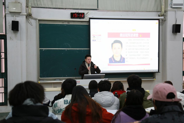 为深入贯彻落实习近平总书记在学校思想政治理论课教师座谈会上的重要讲话精神和习近平总书记对学校思政课建设作出的重要指示,落实《南京体育学院思想政治理论课改革实施方案》,形成具有南京体育学院办学特色的思政育人品牌。11月27日下午,奥运冠军陆春龙走进思政课堂,以“我的冠军故事”为主题,面向2024级运动人体科学、运动康复两个专业的大二学生讲授思政课。