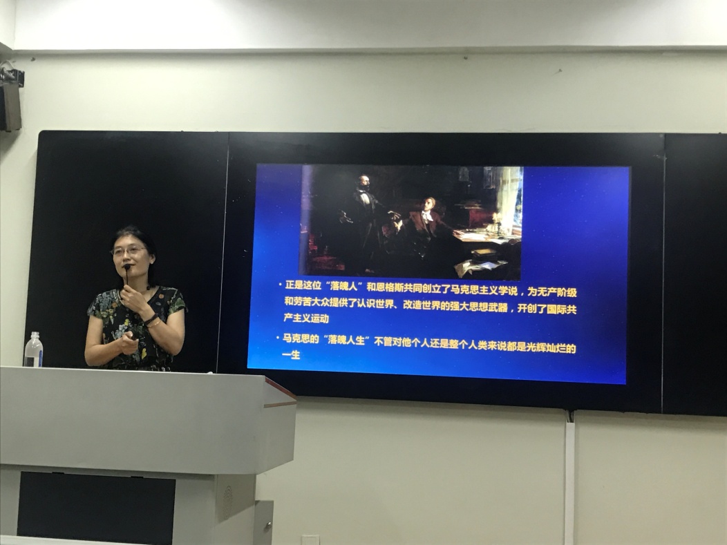 刘静老师从“为什么要纪念和致敬马克思”、“传承和信仰什么样的马克思主义”、“怎么样学习和实践马克思主义”三个方面展开论述,阐述了马克思这位“千年第一思想家“,他有理想、有本领、有担当的一生。她还从“三个飞跃“论证了伟大运动在中国创造的奇迹,”四个理论“概括了马克思主义鲜明特征。马克思主义始终是我们党和国家的指导思想,是我们认识世界、把握规律、追求真理、改造世界的强大思想武器。