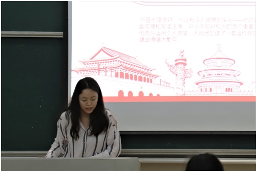 高千钰同学向我们介绍了“邓小平治国术”章。