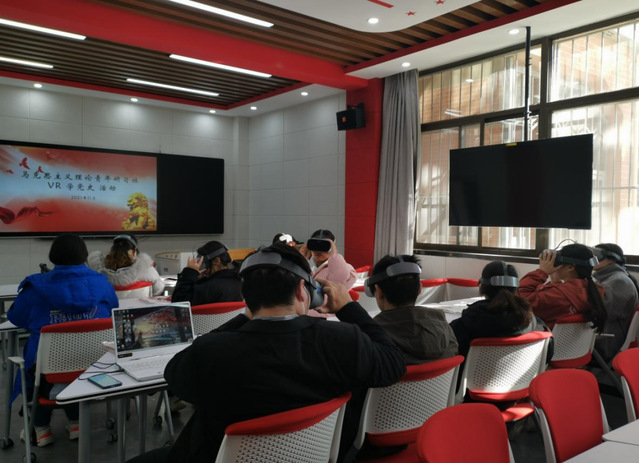 2021年11月23日下午,南京体育学院马克思主义学院马克思主义理论青年研习社团在思政课教学实践中心举行VR学党史活动。