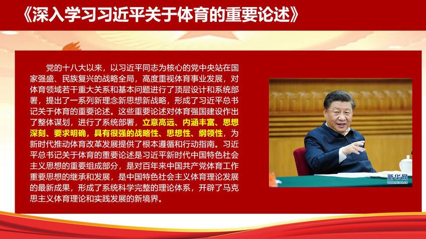 葛翠柏指出,党的十八大以来,以习近平同志为核心的党中央站在国家强盛、民族复兴的战略全局,高度重视体育事业发展,对体育领域若干重大关系和基本问题进行了顶层设计和系统部署,提出了一系列新理念新思想新战略,形成了习近平总书记关于体育的重要论述。这些重要论述对体育强国建设作出了整体谋划,进行了系统部署,立意高远、内涵丰富、思想深刻、要求明确,具有很强的战略性、思想性、纲领性,为新时代推动体育改革发展提供了根本遵循和行动指南。学习好习近平总书记关于体育的重要论述,有助于全面深化对我国体育发展的认识;有助于深刻理解当代中国体育发展规律;有助于进一步明确党中央为我国体育改革发展擘画的新蓝图、指引的新方向。
