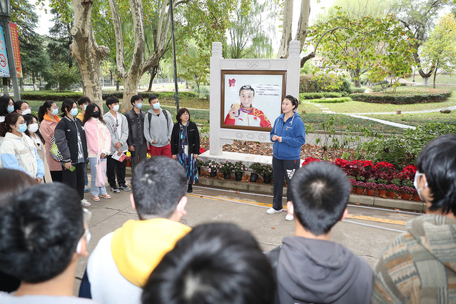 在实践教学环节中,许安琪带领同学们徜徉在全新落成的南京体育学院奥运冠军大道上,将自己拼搏进取、砥砺前行的运动生涯向大家娓娓道来,与大家共同畅谈学习贯彻党的二十大精神,悉心培养新一代运动员建功赛场、教育引领新时代大学生成长成才的真知灼见。