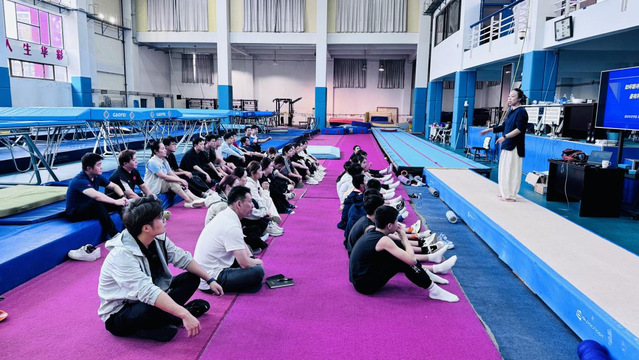 为了调整运动员赛前心态、确保全运会取得圆满成绩。9月20日下午,体操学院邀请毕晓婷博士为蹦床队全体教练员、运动员介绍调整比赛心态和赛前准备的策略。