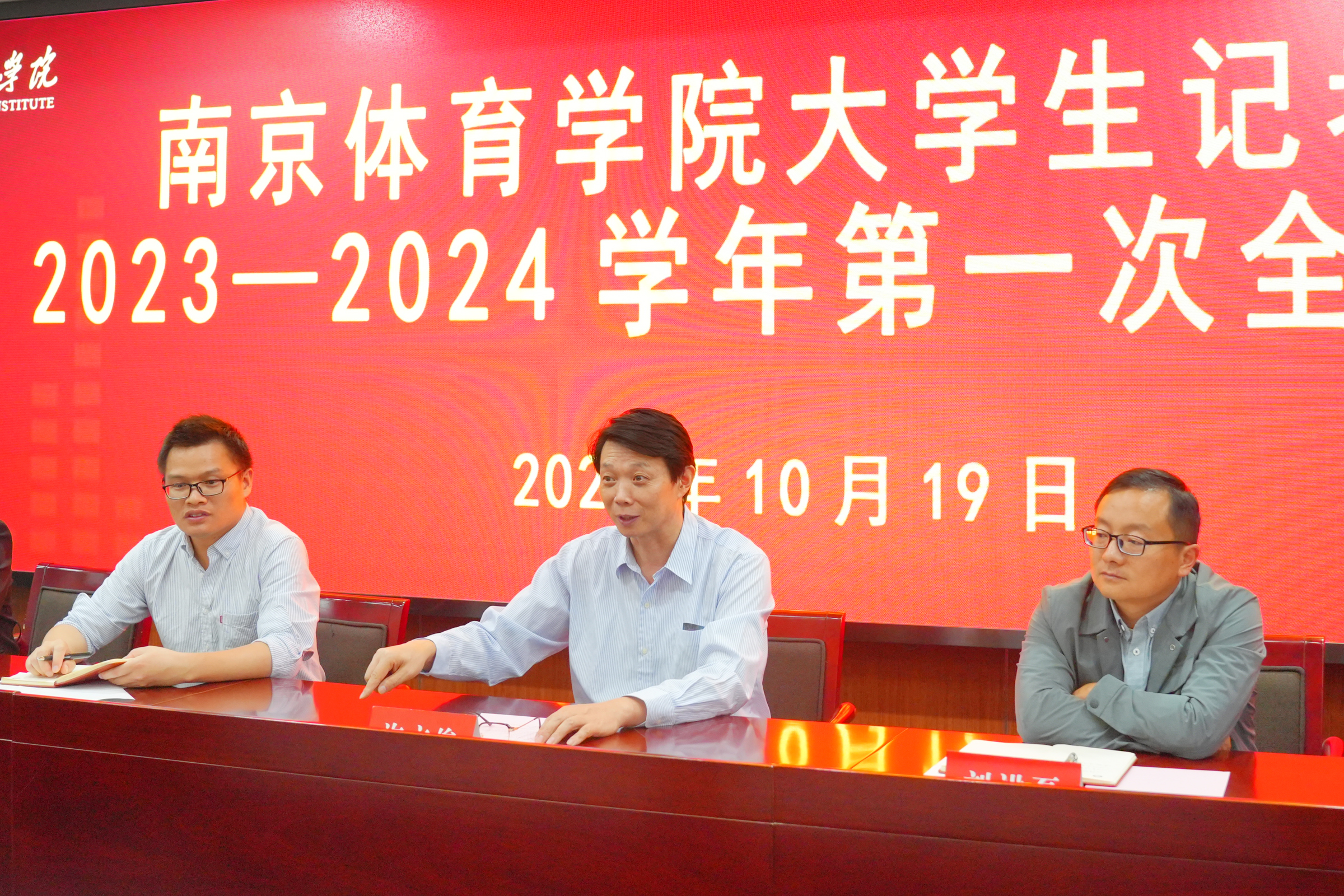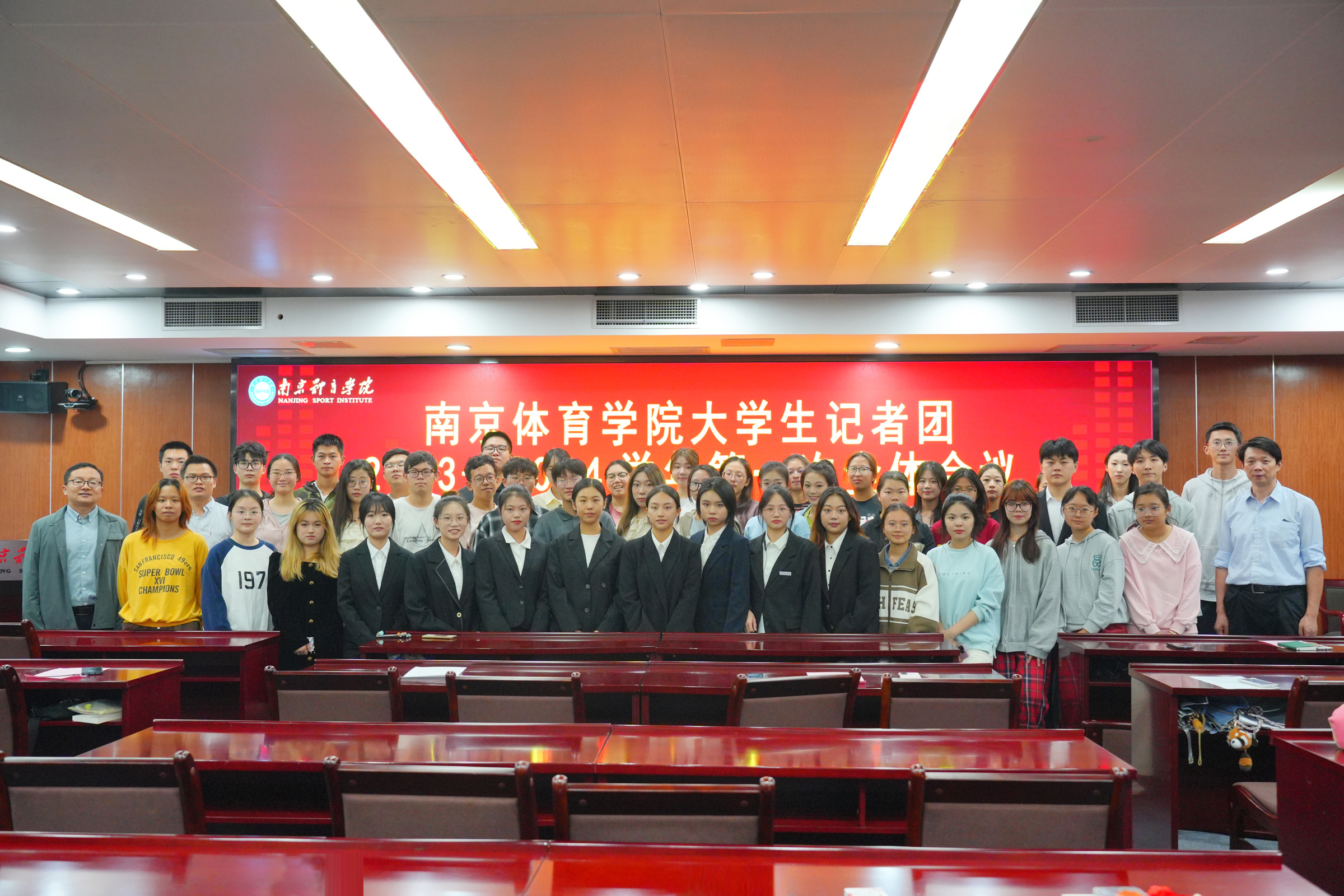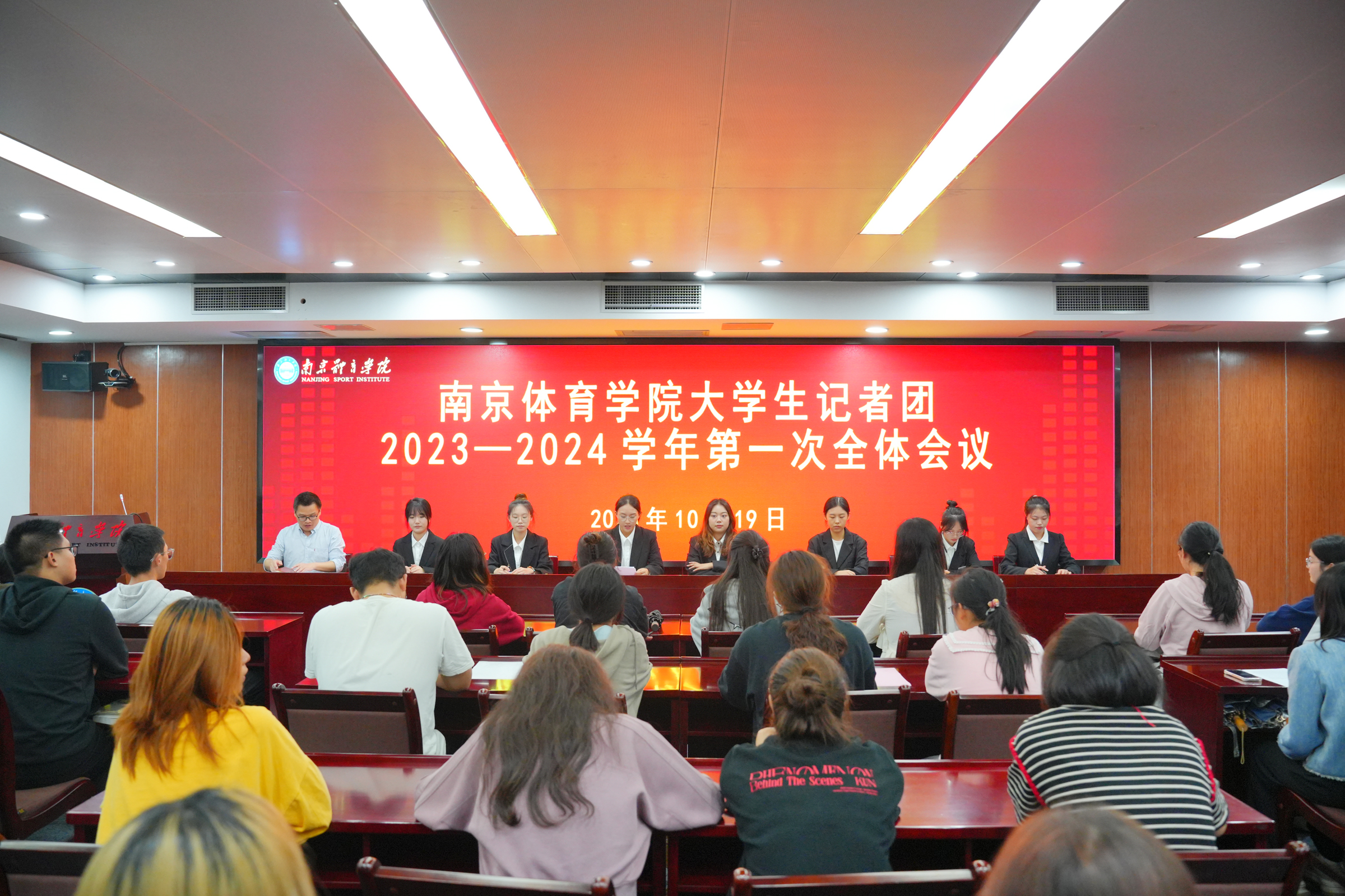 南京体育学院大学生记者团2023-2024学年第一次全体会议10月19日晚在灵谷寺校区召开。