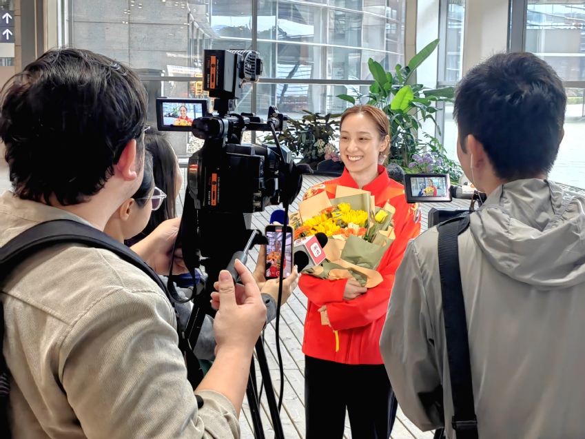 管理保障团队代表、体操学院院长梁琴接受媒体采访
