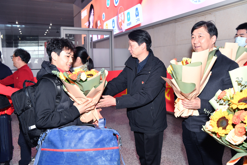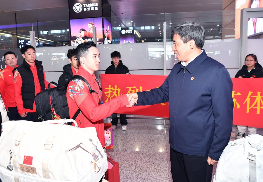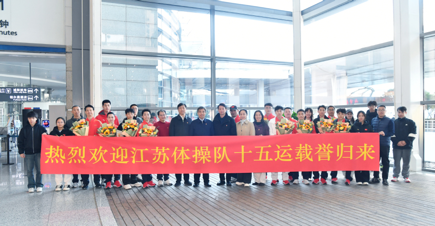 11月18日下午,校党委书记刘红明到南京禄口国际机场迎接凯旋的江苏省体操队运动员、教练员及管理保障团队。