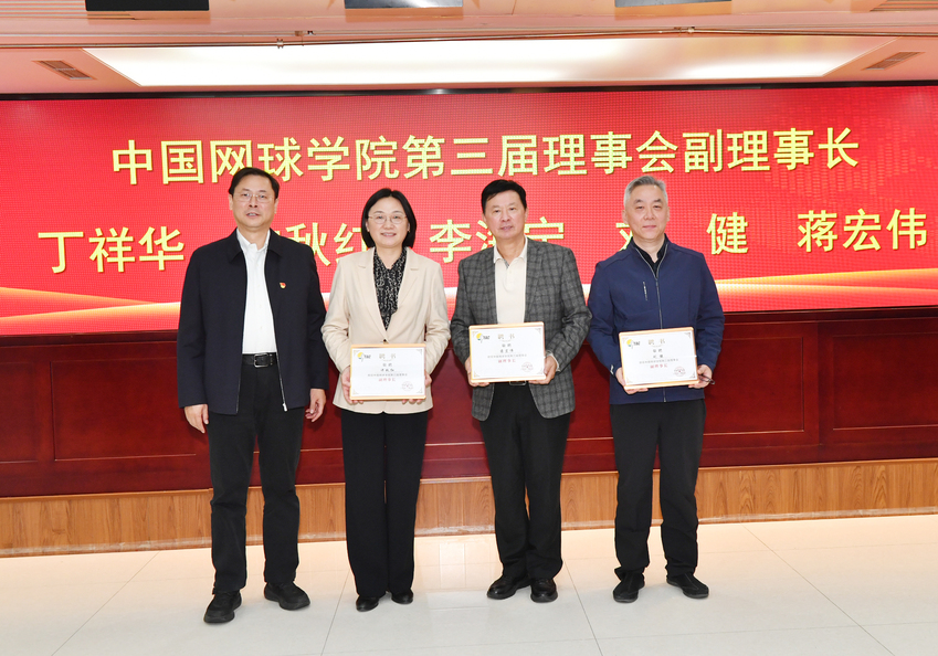 为中国网球学院第三届理事会顾问白喜林、刘红明颁发聘书