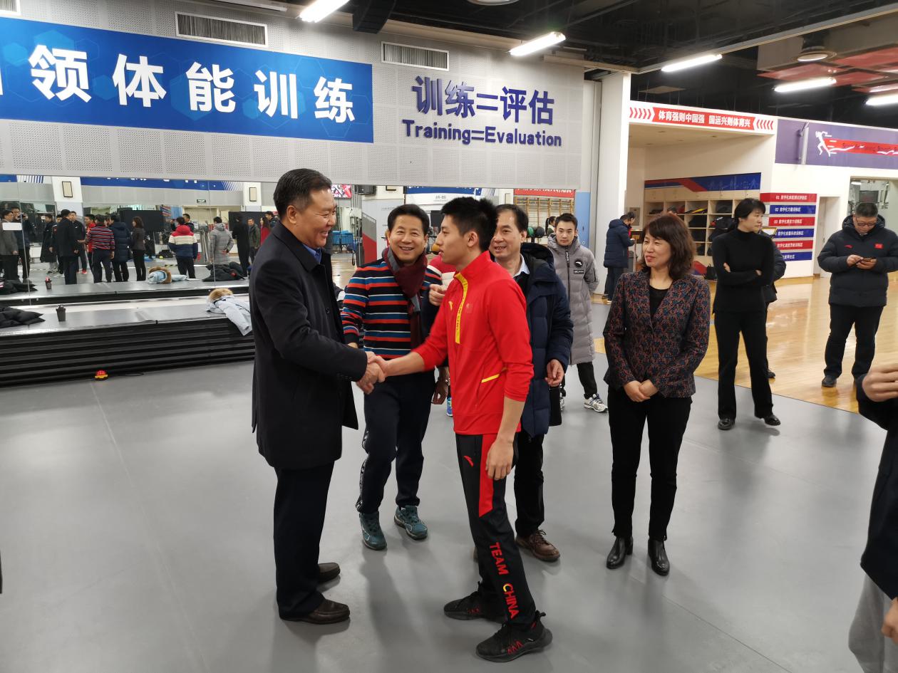 春节将至,东京奥运会的脚步越来越近,在国家队备战的关键时期,1月17-18日,校党委书记朱传耿,校长杨国庆,校党委常委、副校长肖爱华,校党委常委、纪委书记、派驻监察专员潘林珍带领各训练部门负责人前往北京看望慰问正在紧张备战奥运会的我校国家队运动员、教练员和科医保障团队。