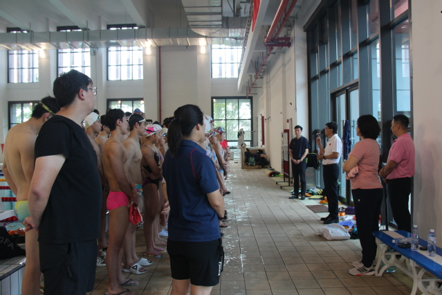 慰问结束后,杨国庆对淮安市体育运动学校为我校游泳队提供优质的训练环境、住宿环境、餐饮保障等表示高度的赞扬和由衷的感谢。他叮嘱全体转训人员要继续做好后续转训期间的安全工作、反兴奋剂工作和综合保障工作,确保转训期间训练工作有序开展。